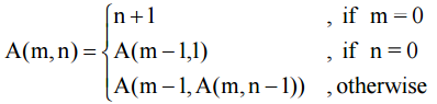 此函數的成長速度相當快,對於 m 和 n 是很小時亦然