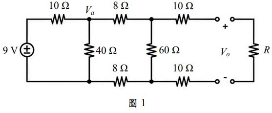 一、一個電阻陣列與一個負載電阻 R 及一個 9 V 的電池相連,如圖 1 所示。