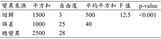 二、已知下列複迴歸分析之變異數分析(ANOVA)表:
