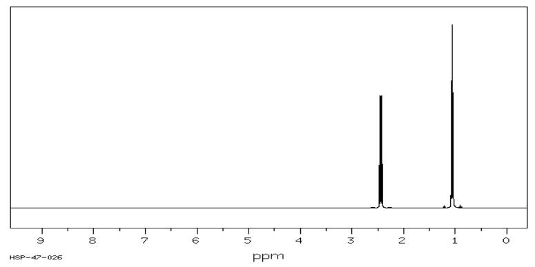 (B) NMR 光譜:出現兩組訊號,積分比為 3:2;約 1.0 ppm(triplet)與約 2.4 ppm(quartet)。