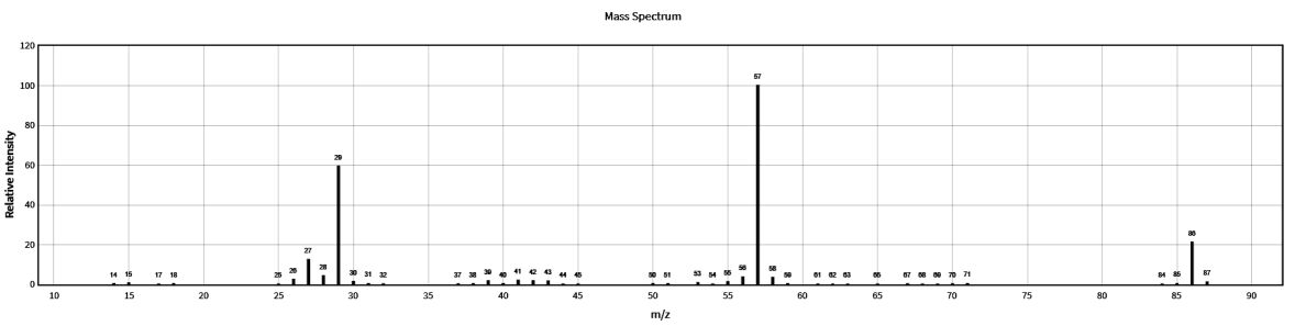 (C) Mass 光譜:在 m/z=29、57 和 86 附近皆有一個分子離子峰。