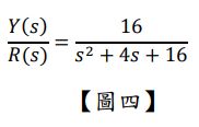 有一個二階系統之轉移函數如【圖四】,請列式計算下列問題: