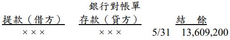 二、乙公司 X5 年 5 月 31 日,現金總分類帳顯示下列餘額:
