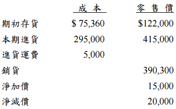 二、臺中公司使用零售價法估計存貨。下列為該公司當年度之有關資料: