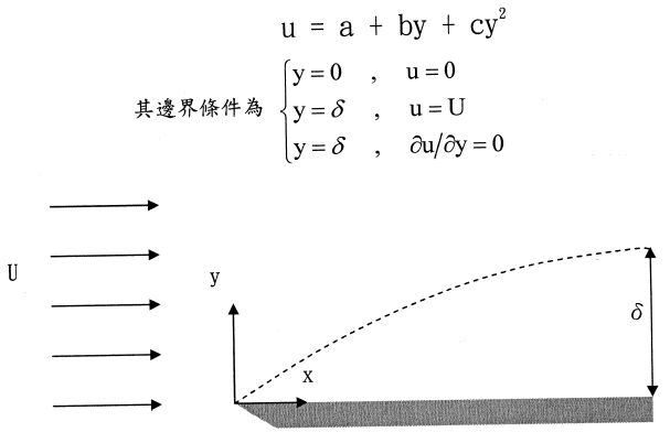 其中 δ 代表邊界層厚度,U 代表邊界層外自由流速度,且 。 請依序回答下列問題: