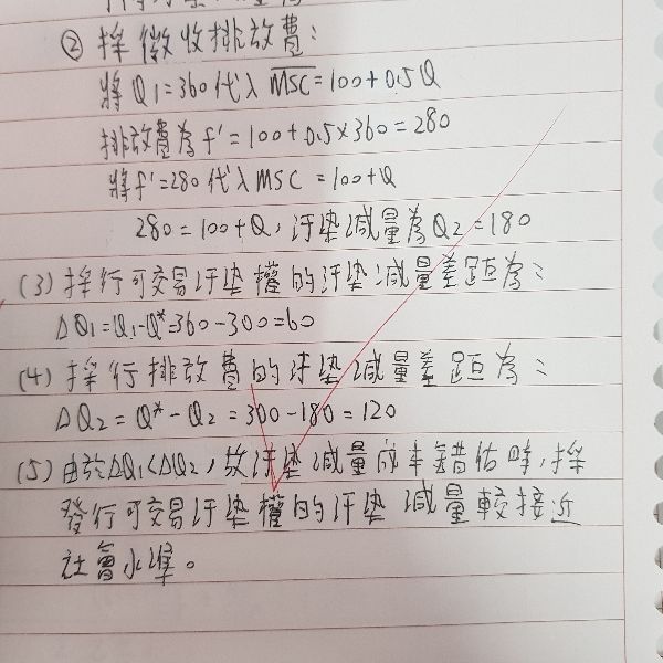 (三)若政府訂定污染減量目標時,將社會污染減量的邊際成本錯估為