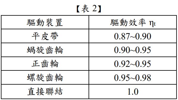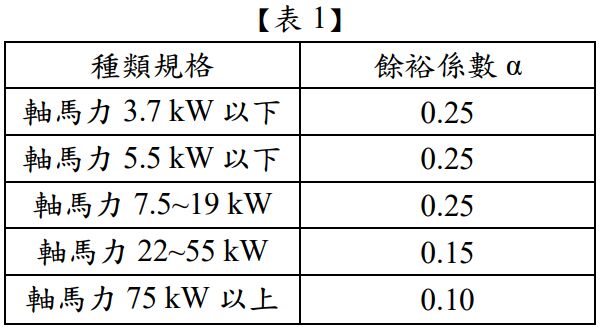 四、近來各界對能源之需求及倚賴日益升高,如何節能變成顯學。而水處理流程設置抽水機乃必然之耗能設施,因此如何選用合適的抽水機,有效降低動力費用是非常重要之課題。 某一抽水系統,在 20℃條件下,設計抽水量為 2.0 m3 /min,總動水頭為 50 m,以電動機直接驅動,抽水機效率為 80%,今為提昇水處理效能,請回答下列問題(請依題目所給條件 及【表 1、2】,並選用動力餘裕係數 α 及驅動效率 ηt )?(3 題,每題 5 分,共 15 分)
