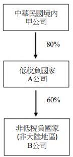 三、中華民國境內甲公司 113 年度直接持有境外低稅負國家 A 公司股權 比率 80%,A 公司持有境外非低稅負國家(非大陸地區)B 公司股權 比率 60%,A 公司為甲公司之受控外國企業(CFC),A 公司 113 年 度無實質營運活動。甲公司、A 公司及 B 公司之關係企業股權結構 如圖所示,113 年度持有股權比率皆未變動,財務報表稅後盈餘及決 議盈餘分配數資訊如下: