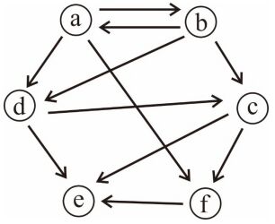 五、下圖為一有向圖(Directed Graph)G。請完成下列各題: