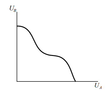 三、假設一經濟體系只有 A 和 B 兩個人,效用可能曲線(utility possibility curve)如下 圖所示: