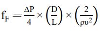 (∆P 為壓力降,D 為管線直徑,L為管長,ρ 為流體密度,υ 為流體平均流速)