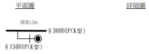 請依「臺北自來水事業處管線工程竣工圖繪製作業須知」之圖例及相關規定,繪製下列各小題自來水管線 之詳細圖(含直管、管件、管徑、深度、固定台等):【於答案卷上作答時,請標示小題題號】
