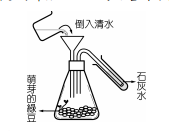 (3)實驗中如果把萌芽的綠豆改為乾燥的種子,則試管內石灰水有何變化? (A)幾乎沒有變化(B) 石灰水變為混濁的速度加快(C)石灰水變為粉紅色(D)石灰水變為藍綠色。答:【 】。