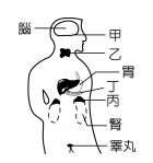 如圖為人體內分泌腺的位置圖,試以代號回答問題: