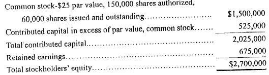 On February 5, the directors declare a 20% stock dividend distnbu on February 15 stockholders of record. The stock’s market value is $40 per share on February 5 before the stock dividend. The stocky market value is $34 per share on February 28.
