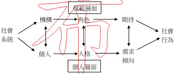 3.陳老師在學校服務三年後,想依據現行《教師進修研究等專業發展辦法》向學校申請全時進修碩士班一年。然而,陳老師兼任教學組長工作績效深獲學校肯定,學校希望他能暫緩進修,繼續兼任行政工作,陳老師的抉擇因此面臨兩難。依據蓋佐(J. Getzels)和顧巴(E. Guba)(1957)所提出之社會系統理論(如下圖),回答下列問題:
