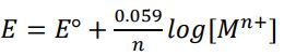 於25℃,在非標準狀態下,可利用下列的能斯特(Nernst)方程式求得其電位