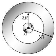 7. 內外半徑各為 3R、5R 的空心金屬球殼帶有 -3Q(Q>0)的淨電荷,在其內部有一半徑為之實心小金屬球與球殼之球心均在點,實心小金屬球則帶有之