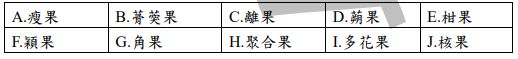 2.請將下列果實與其果實種類配對,並將代號填入: 蘿蔔:(1)______、胡麻:(2)______、曼陀羅:(3)______、小麥:(4)______、向日葵:(5)______、胡蘿蔔:(6)______、橄欖: (7)______、懸鉤子:(8)______。