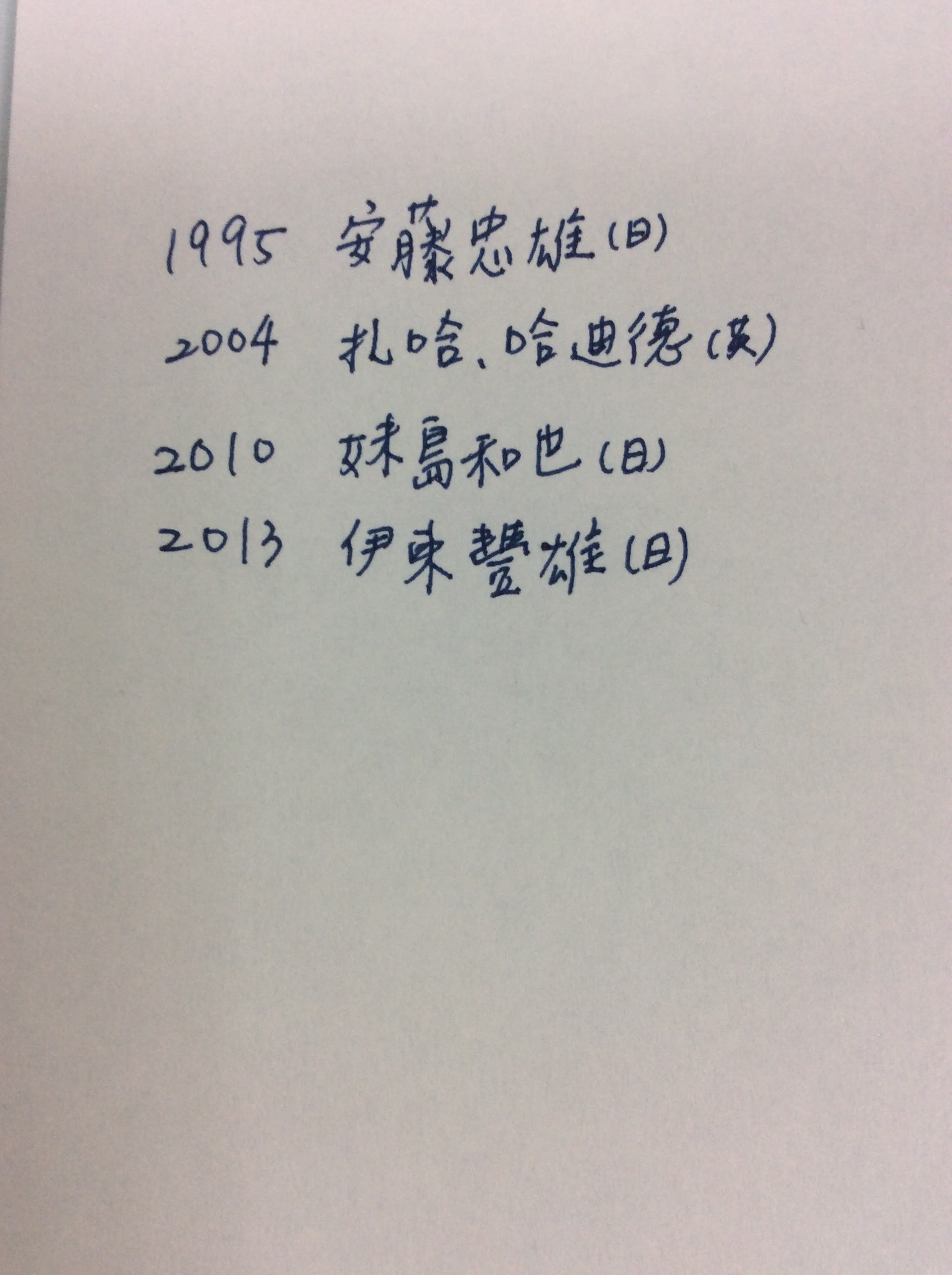 安藤忠雄(1995)、札哈哈蒂(2004)、妹島和世(2010)、伊東豐雄(2013)