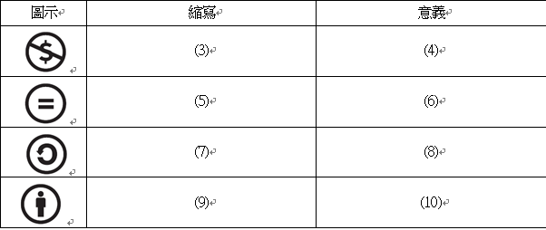 2. 請分別簡單寫出下列創用CC授權標誌的縮寫與意義。