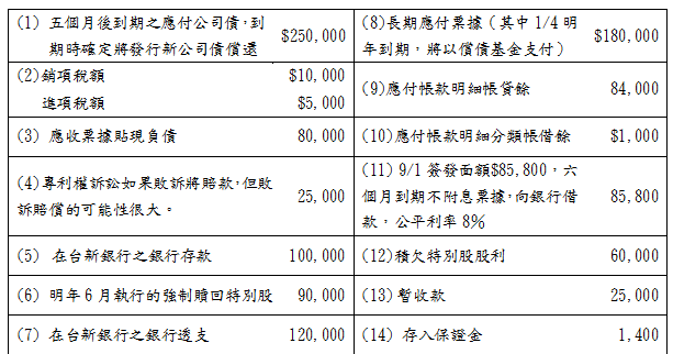 8.試判斷下列各項12月底資料的性質,計算流動負債的金額。