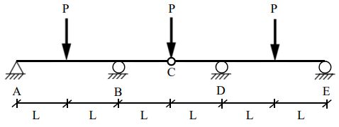 三、如下圖所示之受等荷載集中力作用之連續梁,請繪出此結構在受力下 之: