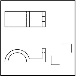 二、21 至 25 題請依圖示之正投影視圖繪出所缺之視圖,在三視圖右方空格處 徒手繪出所缺視圖(隱藏線需繪出),並於下方空格處徒手繪出等角立體圖(隱藏線需繪出),並請依右上角圖示方向繪製。(請用鉛筆、尺、橡皮擦作答,否則不記分)