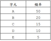 (2) 請將下列字串轉換為霍夫曼編碼:(2 分)ABCDE請寫出對應的二進位字串。