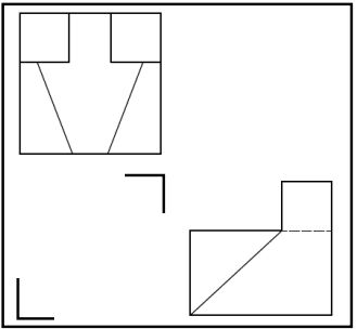 二、21 至 25 題請依圖示之正投影視圖繪出所缺之視圖,在三視圖右方空格處徒手繪出所缺視圖(隱藏線需繪出),並於下方空格處徒手繪出等角立體圖(隱藏線需繪出),並請依右上角圖示方向繪製23.