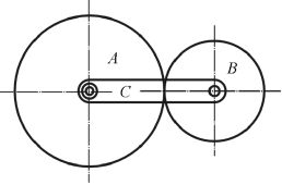 二、周轉輪系如圖所示,齒輪 A 與 B 的齒數分別為 80 齒及 40 齒,若齒輪 A 的轉速為順時針方向 60rpm,且旋轉臂 C 的轉速為逆時針方向 30 rpm,請依序回答下述問題(計算單位依題意要求)。