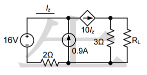 4.如下圖所示之電路,當電路設計在最大功率轉移時,求