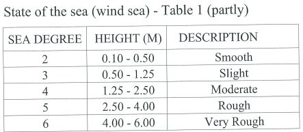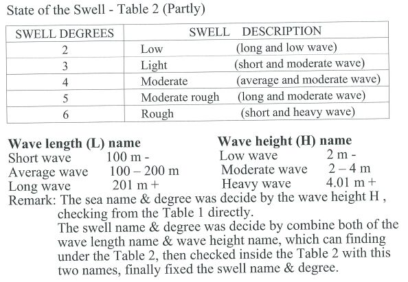4. Based on the Douglas sea scales, The following are parts of the tables of the state of the sea (The wind generated waves) and the state of swell (The background swell).