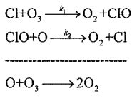 (2, 8pts) Chlorine has been found to catalyze ozone's destruction in stratosphere: