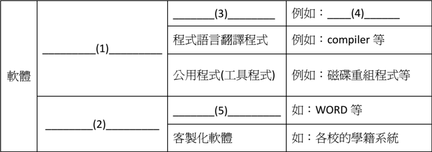 3. 請完成下表:(5 分)