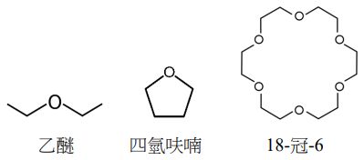 8. 醚類(Ethers)依結構可分為鏈狀(如乙醚)、環狀(如:四氫呋喃 THF)及宏環聚醚(如 18-冠-6)。如圖所示