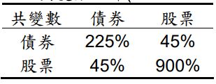 1. 某投資人所持有的投資組合之預期報酬率與風險分別為:股票的預期報酬率E(rs ) = 20%、標準差σs = 30%;債券的預期報酬率E(rB) = 12%、標準差σB = 15%。此外,股票與債券之相關係數 (correlation coefficient):ρ = 0.10;共變數矩陣(covariance matrix)如下: