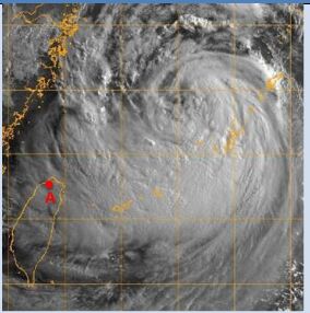 1 下圖為 2012 年 8 月某一時間的海棠颱風衛星影像 圖(影像來源:NAVY/NRL),請根據此圖回答下列問題。