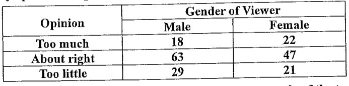 (6-A)Test whether opinion and gender of viewer are independent, controlling the α risk at 0.10. State the alternatives, the decision rule, the value of test statistic, and the conclusion. (12%)