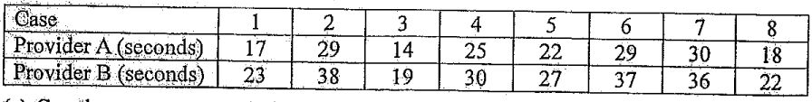 (a) Can the company conclude that Provider A is better than Provider B at a 5% level of significance? (10%)