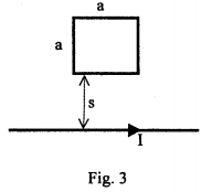 3. A square loop of wire (side a) lies on a table, a distance s from a very long straight wire, which carries a current /,as shown in Fig. 3.