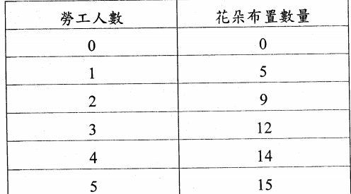 2.真愛花店是一間專門安排婚禮及畢業典禮等活動的花店。其空間設備每天需支 付固定的成本200美元,而每位員工每天需支#50美元的薪資。下表為真愛 花店每天的生產函數:(16%)