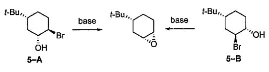 5. Answer the following questions regarding the base-mediated cyclization reactions bromohydrins 5-A and 5-B, as shown below.