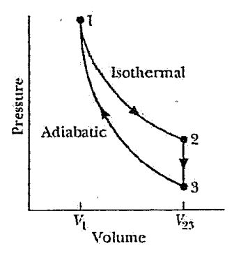 17. In the figure, where V23 = 4.00V1, n moles of a diatomic ideal gas are taken through the cycle with the molecules rotating but not oscillating. The temperature at point 1(3) is T1(T3).