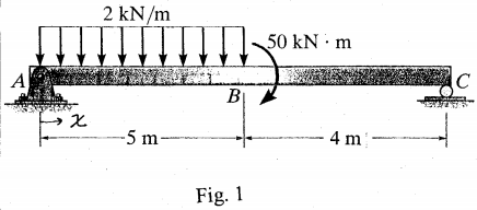 (b) Write the equations of shear and bending-moment for section AB of the beam