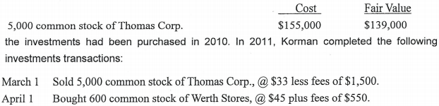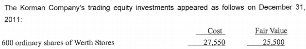 四.Korman Company has the following trading equity investments on December 31, 2010: