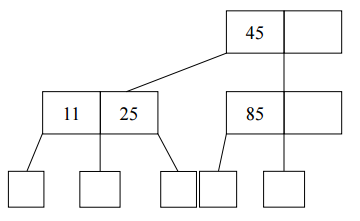 ⑴以下圖為起始之 2-3 tree,畫出插入值 71 後的 2-3 tree。(3 分)