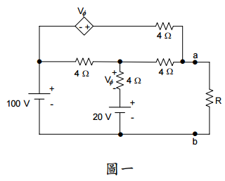 ⑴使最大功率送至 a 及 b 兩端 R 之電阻值為若干歐姆?
