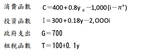 三、某國中央銀行經研處估計該國在 2015 年的總體結構式模型如下: