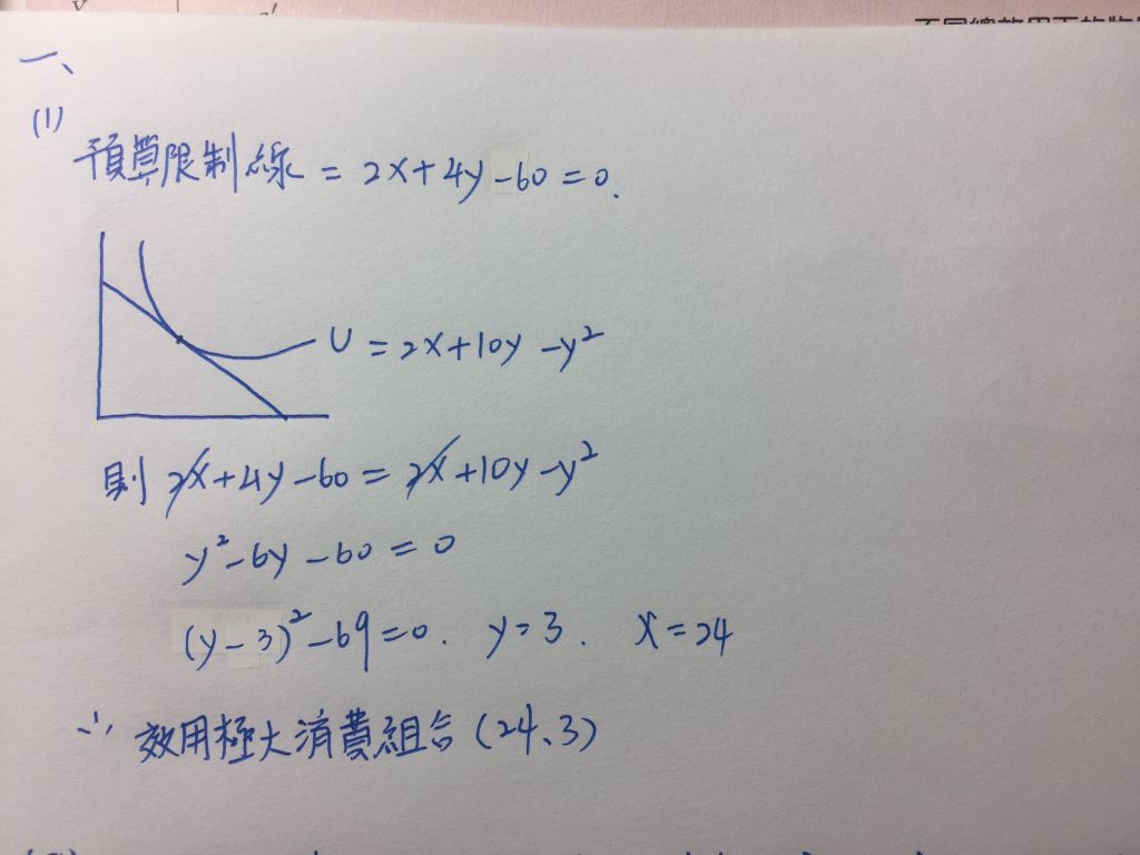 3樓有錯誤 均衡時預算線斜率(x的相對價格)要等於mrs。
